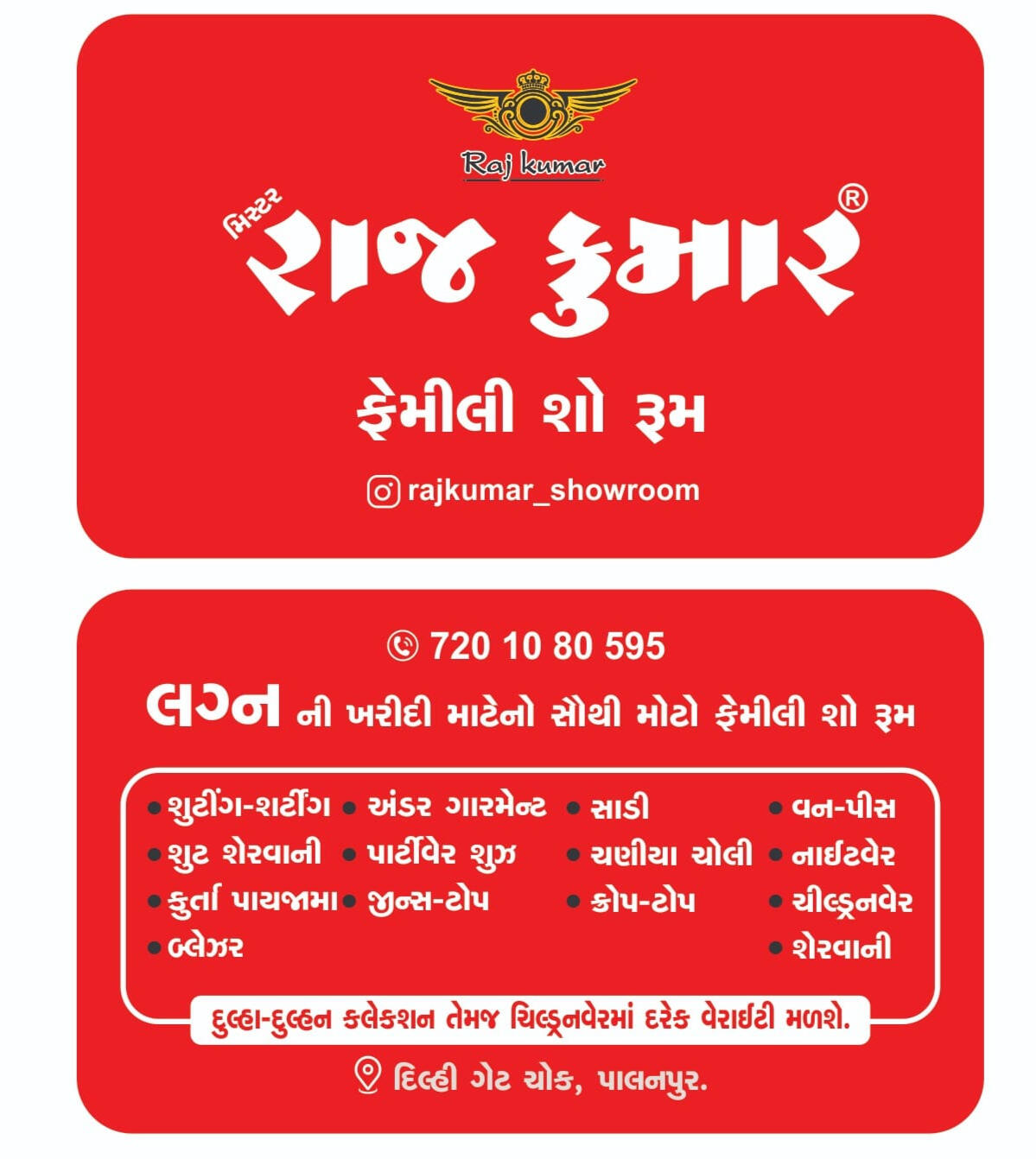 *શુટિંગ - શટીંગ *શૂટ શેરવાની *કુર્તા પાયજામા *બ્લેઝર *અન્ડર ગારમેન્ટ *પાર્ટીવેર શુઝ *જીન્સ ટોપ *સાડી *ચણીયા ચોળી *ચિલ્ડ્રનવેર-ક્રોપ ટોપ *ચિલ્ડ્રનવેર-વન પીસ *ચિલ્ડ્રનવેર-નાઇટવેર *ચિલ્ડ્રનવેર